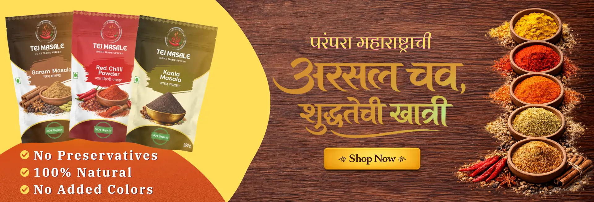 We at Tej Masale Make Authentic Maharashtrian spices using traditional Ukhal method to maintain aroma, taste, and purity.